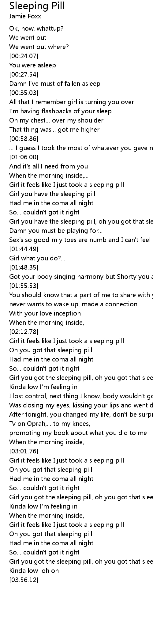 Girl you have the sleeping pill, oh you got that sleeping pill |