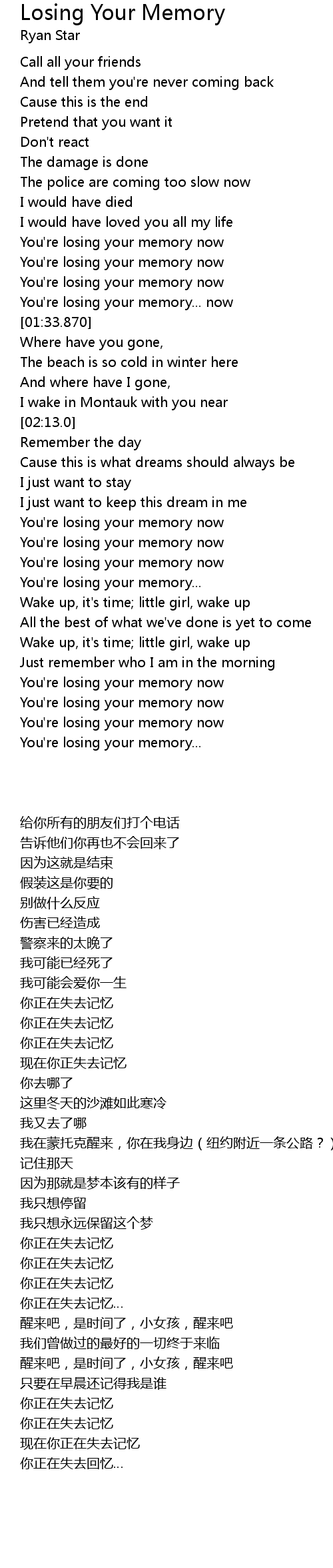 | [02:34.700] | 你正在失去记忆 |