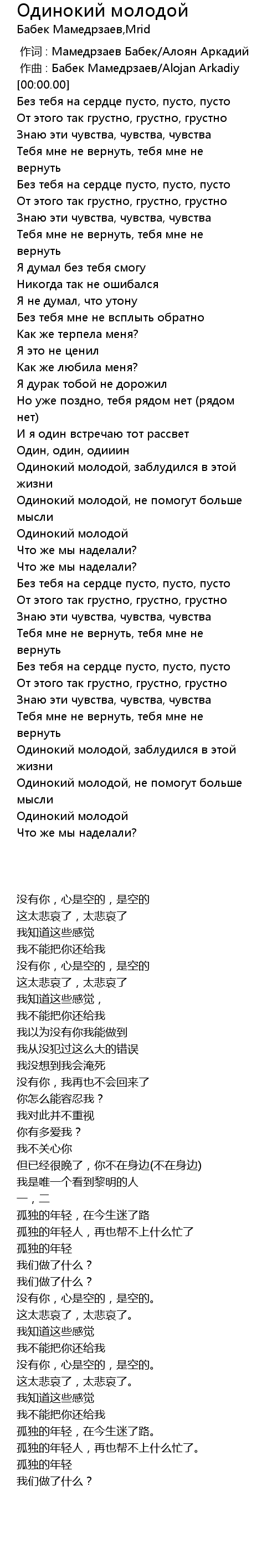 | [01:23.688] | Одинокий молодой, заблудился в этой жизни |