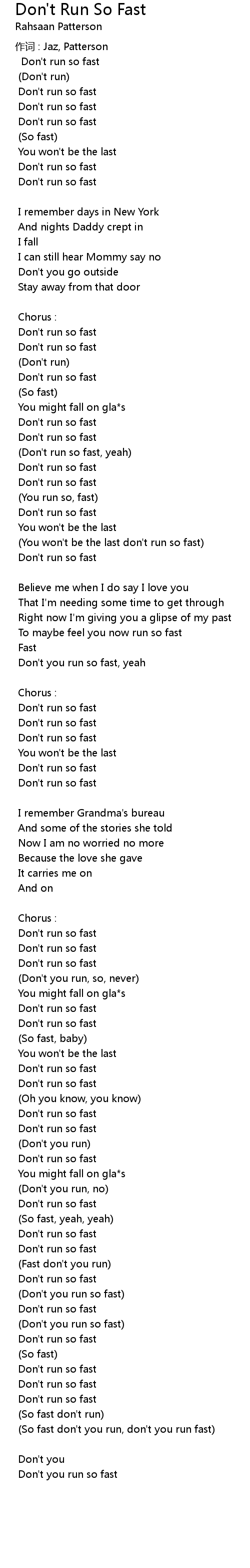 | So fast don' t you run, don' t you run fast | |