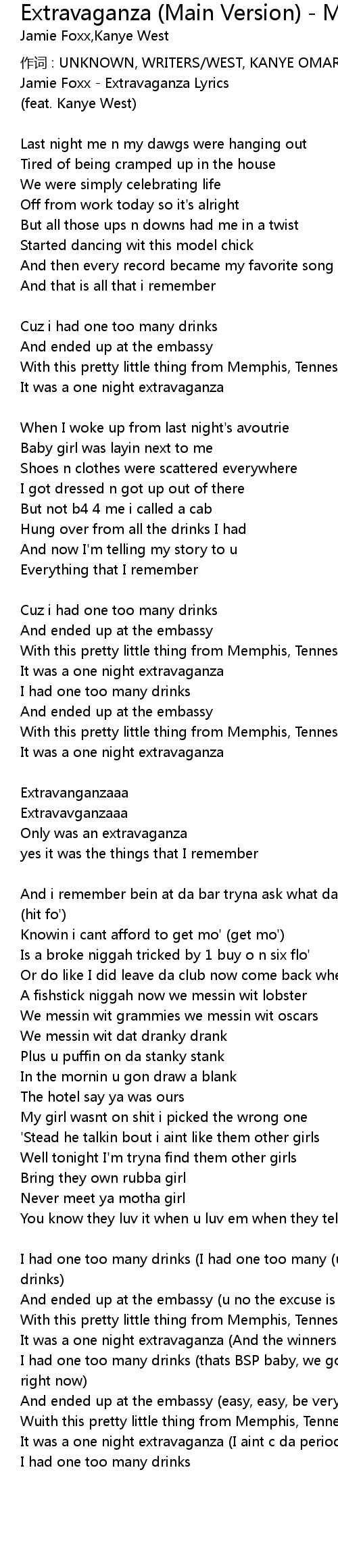 | 歌曲 | Extravaganza (Main Version) - Main Version |