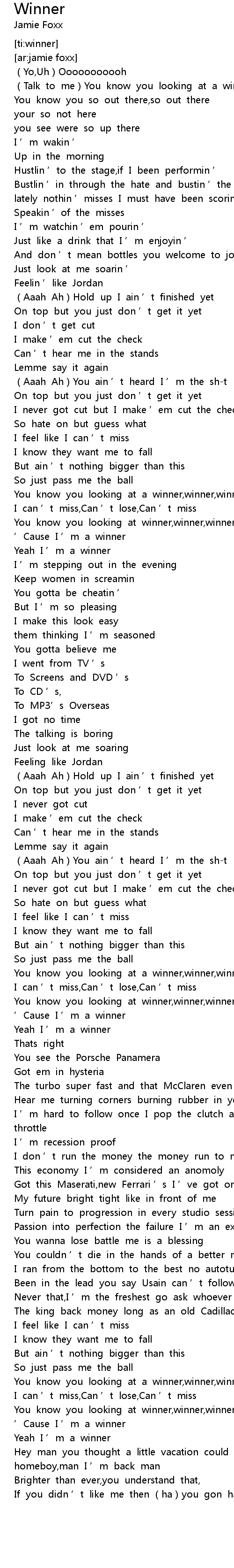 | [00:09.89] | Talk to me You know you looking at a winner |