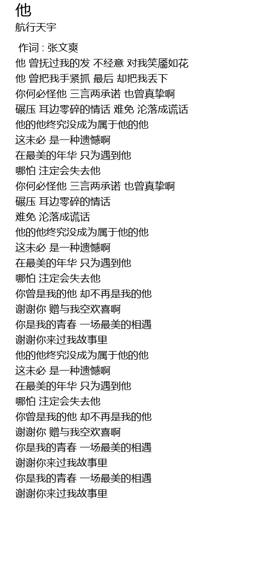 | [02:14.55] | 他的他终究没成为属于他的他 |