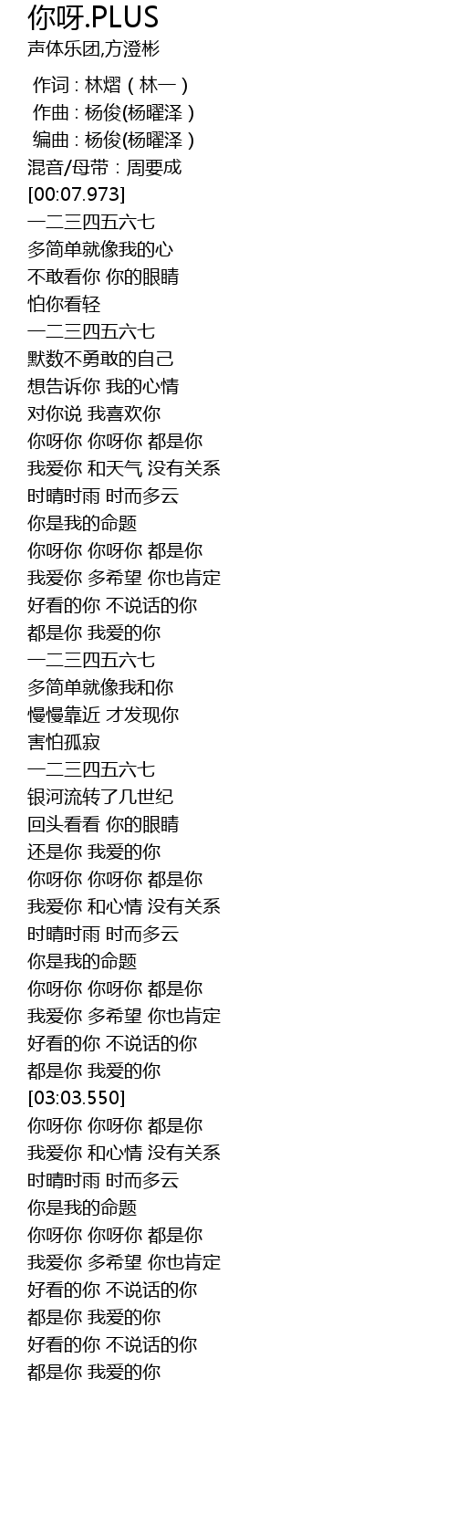 | [03:09.839] | 你呀你 你呀你 都是你 |