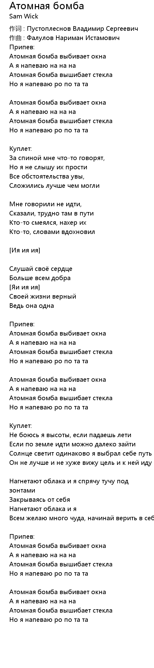 Атомная бомба 歌词