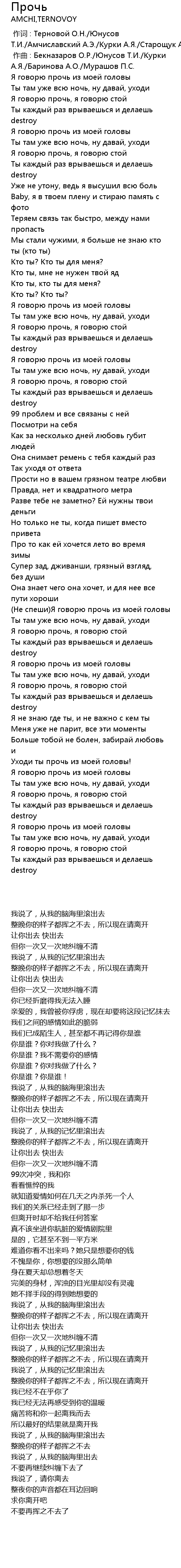 | [00:56.60] | Ты там уже всю ночь, ну давай, уходи |