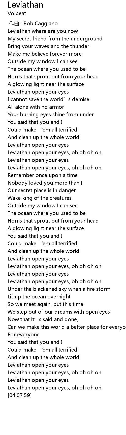 | [03:49.89] | Leviathan open your eyes, oh oh oh oh |