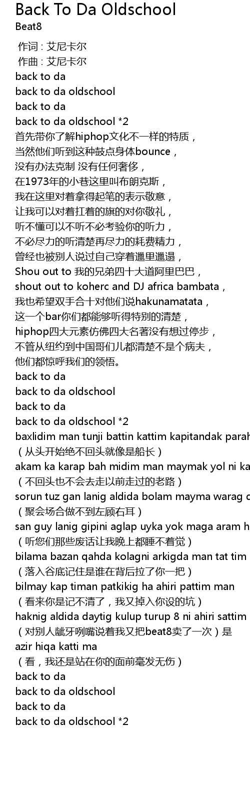 | 歌曲 | Back To Da Oldschool |