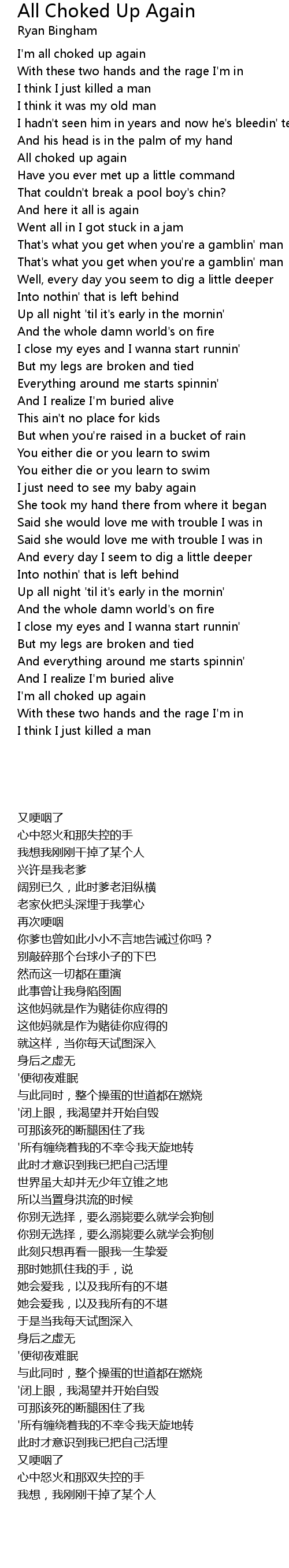 I'm all choked up again |