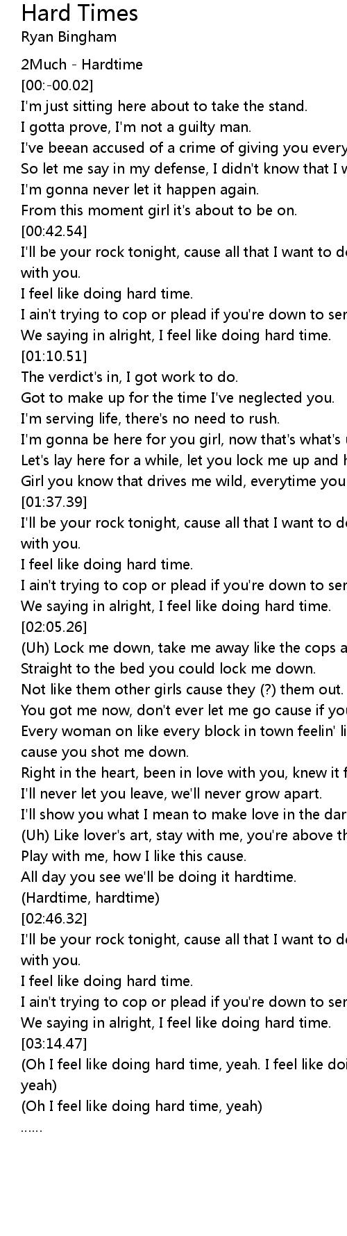 | [03:14.80] | (Oh I feel like doing hard time, yeah. I feel like doing hard time, yeah) |