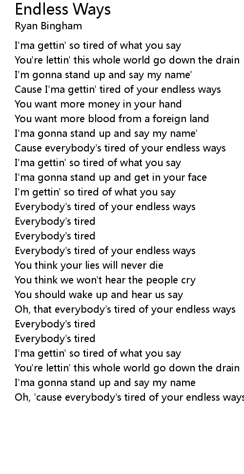 Cause everybody's tired of your endless ways |