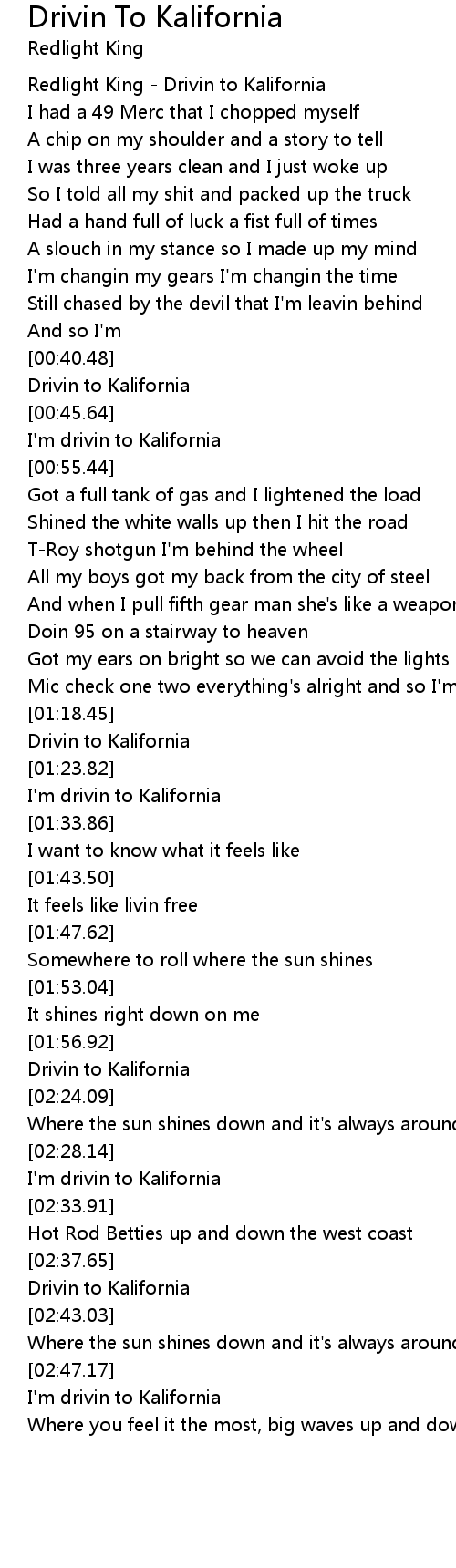 Redlight King - Drivin to Kalifornia |