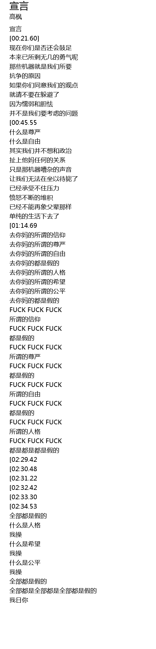 | [01:45.29] | 去你妈的所谓的尊严 |