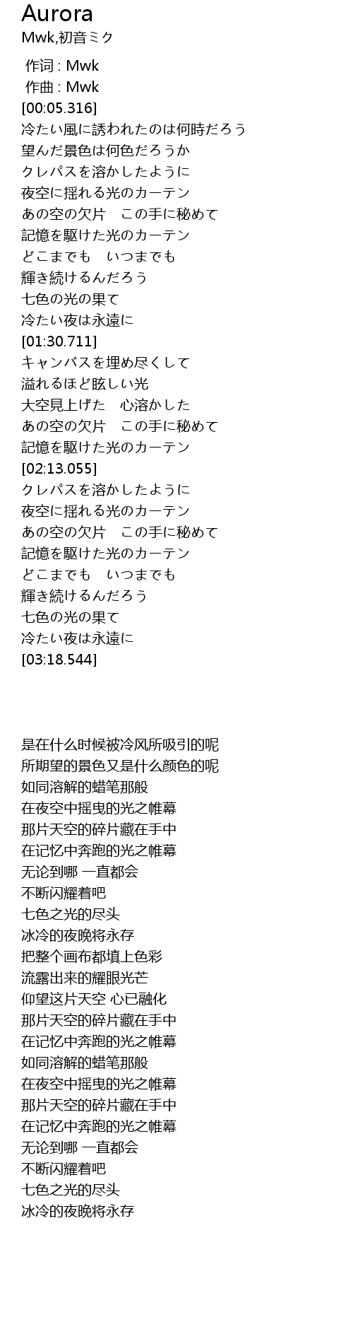 | [02:40.249] | 夜空に揺れる光のカーテン |