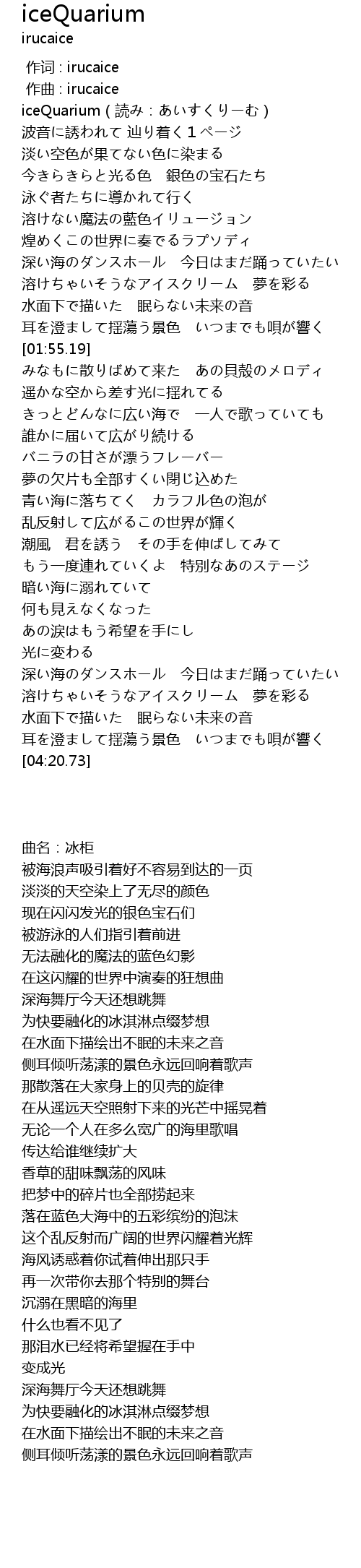| [00:07.96] | iceQuarium(読み:あいすくりーむ) |
