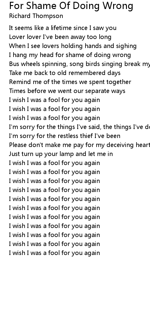 I hang my head for shame of doing wrong |