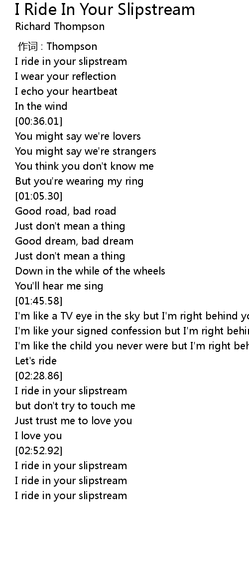 | [02:32.76] | I ride in your slipstream |
