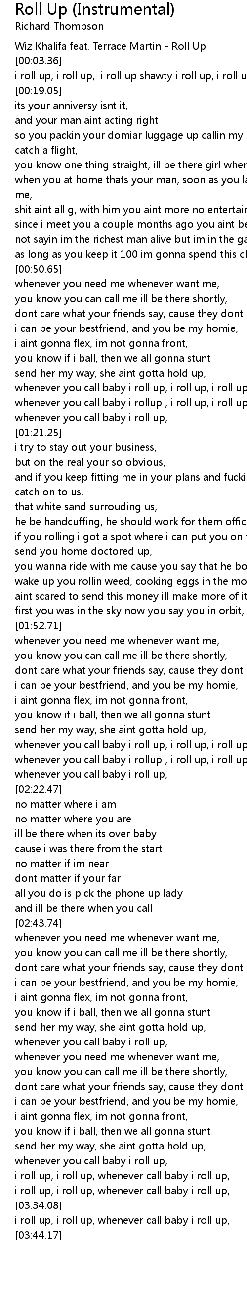 [03:23.85] i roll up, i roll up, whenever call baby i roll up,