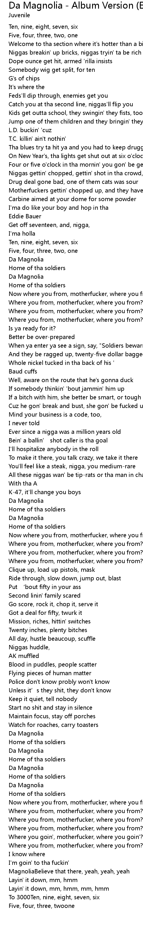 | 歌曲 | Da Magnolia - Album Version (Explicit) |