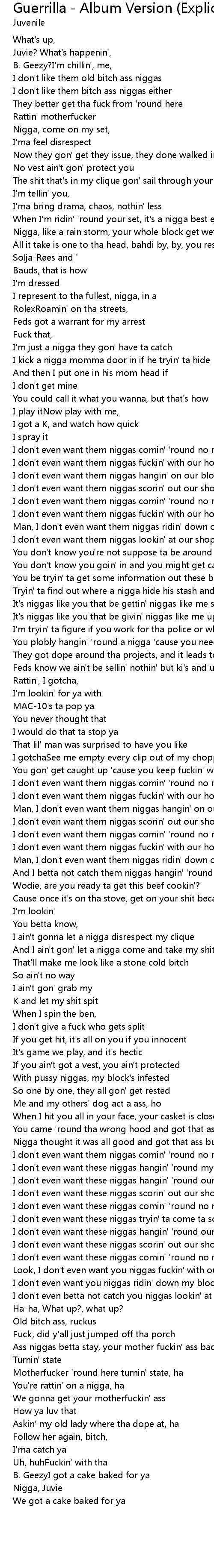 Nigga, Juvie |
