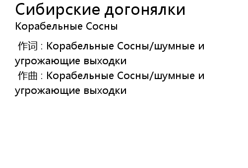 | [00:00.000] | 作曲 : Корабельные Сосны/шумные и угрожающие выходки |