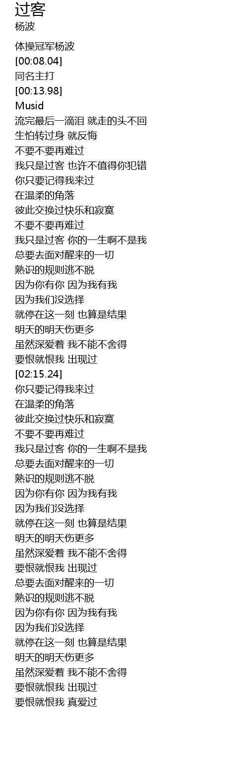| [02:36.90] | 我只是过客 你的一生啊不是我 |