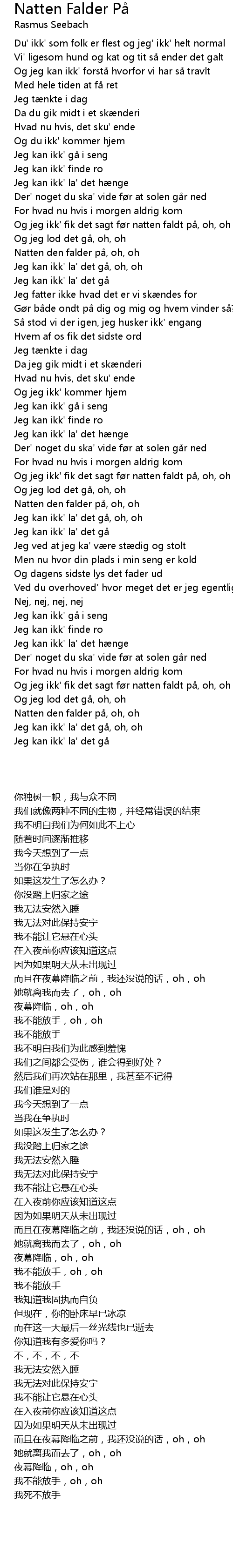 | 歌曲 | Natten Falder På |