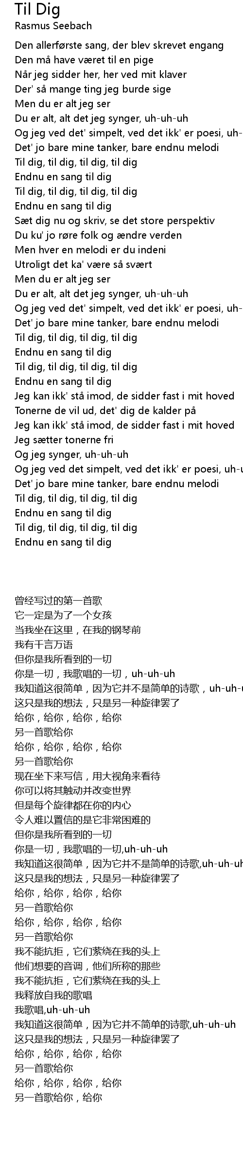 | [02:49.68] | Til dig, til dig, til dig, til dig |