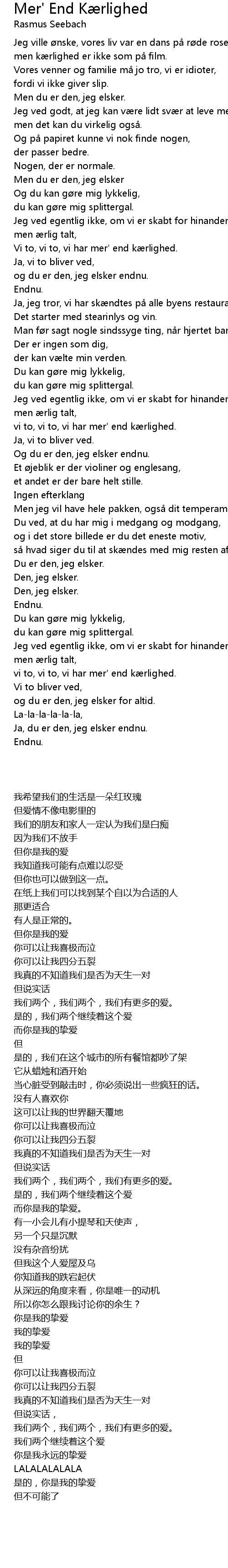 | 歌曲 | Mer' End Kærlighed |