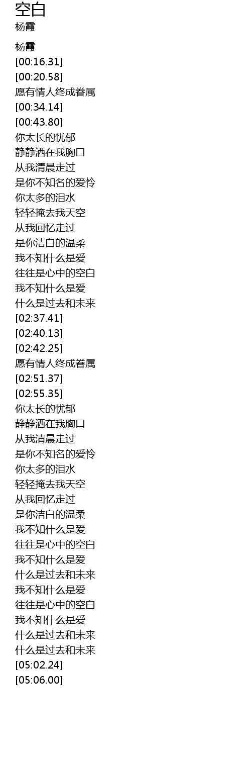 | [04:34.24] | wang wang shi xin zhong de kong bai |