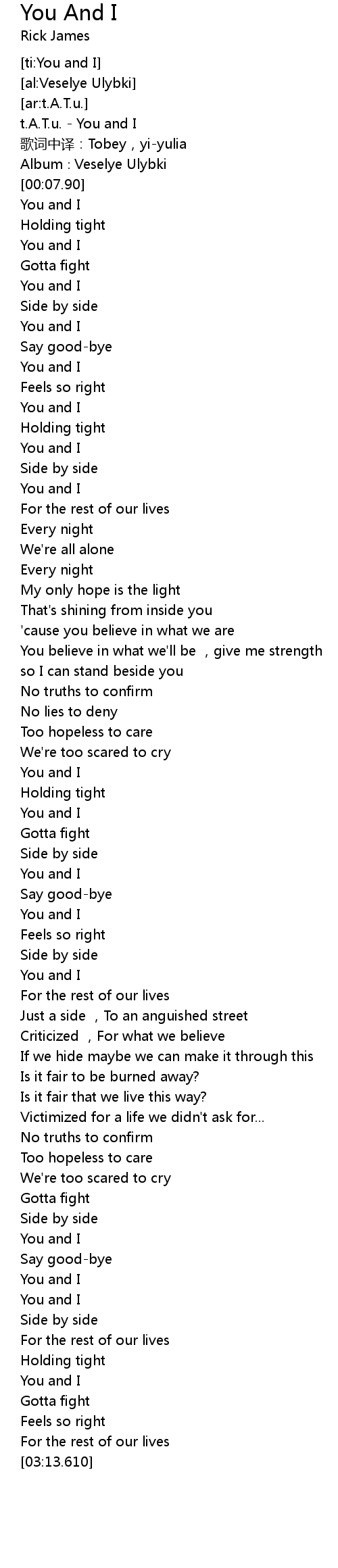 | [00:01.90] | t.A.T.u. - You and I |