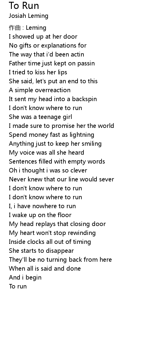 | 歌曲 | To Run |