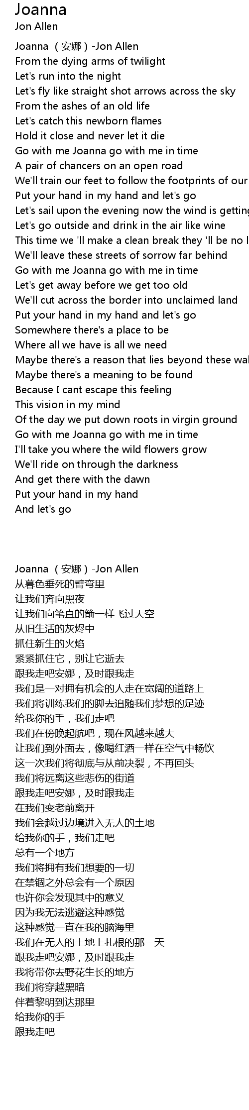 | [00:00.00] | Joanna ān nà Jon Allen |