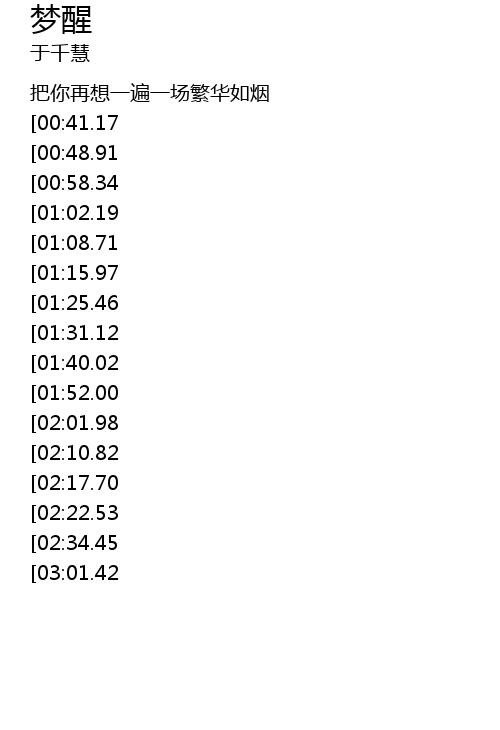 | [03:42.29][01:15.97] | 把梦再作一遍 今生缘浅 |