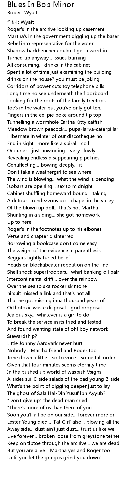 | 歌手 | Robert Wyatt |