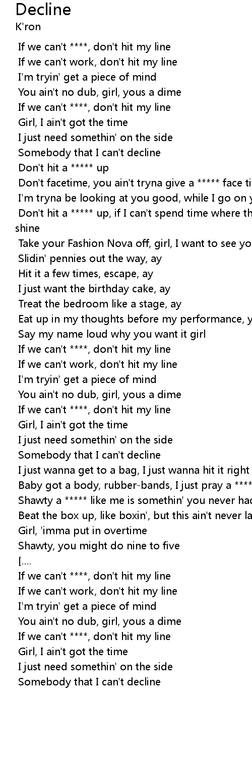 | [02:03.981] | If we can't ****, don't hit my line |