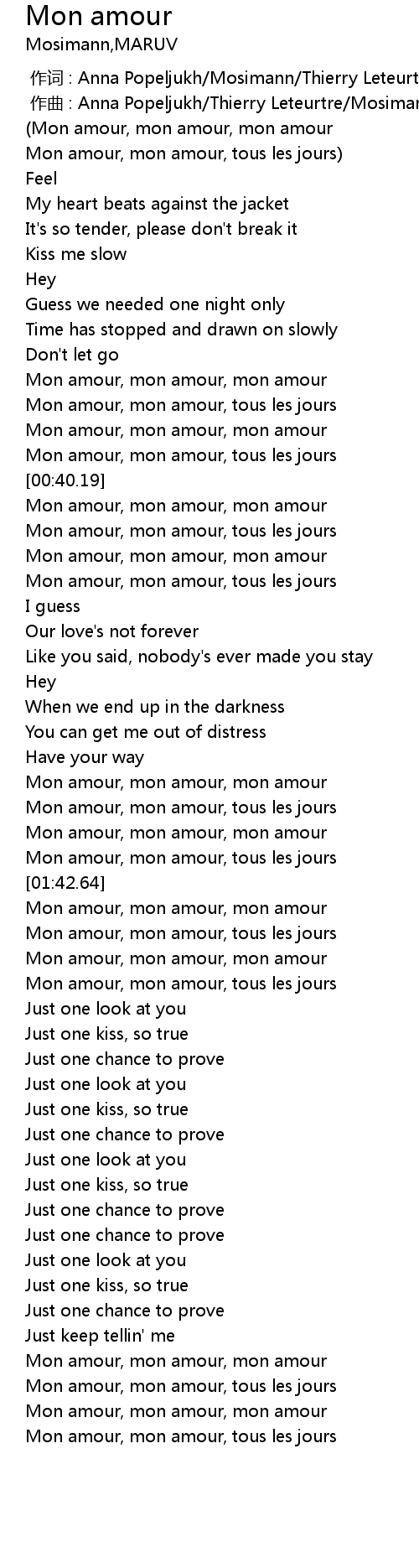 | [01:58.77] | Mon amour, mon amour, mon amour |
