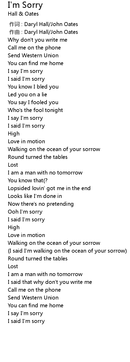 | [00:00.000] | 作词 : Daryl Hall/John Oates |