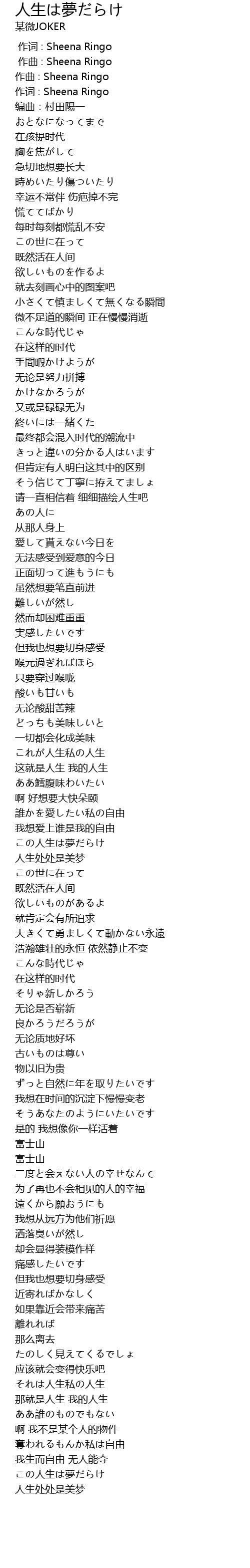 | [00:00.000] | zuò cí : Sheena Ringo |