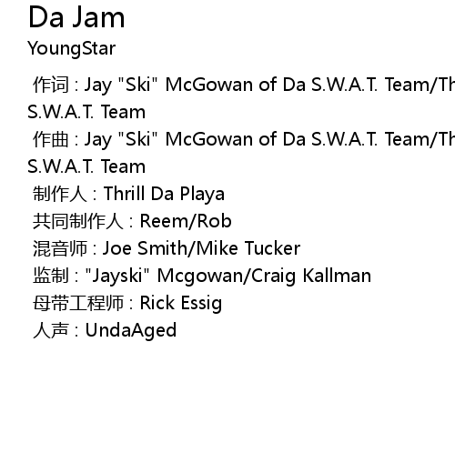 | [00:00.000] | 作曲 : Jay "Ski" McGowan of Da S.W.A.T. Team/Thrill Da Playa of Da S.W.A.T. Team |