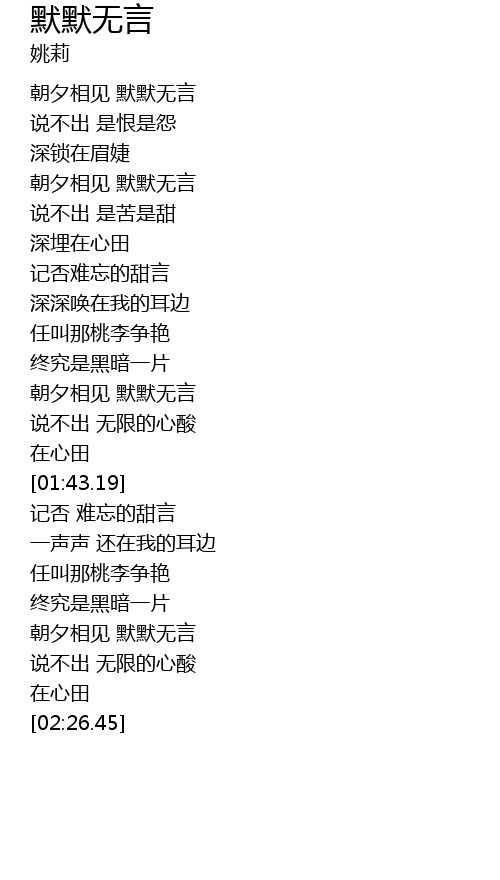 | [01:21.57] | zhāo xī xiāng jiàn mò mò wú yán |