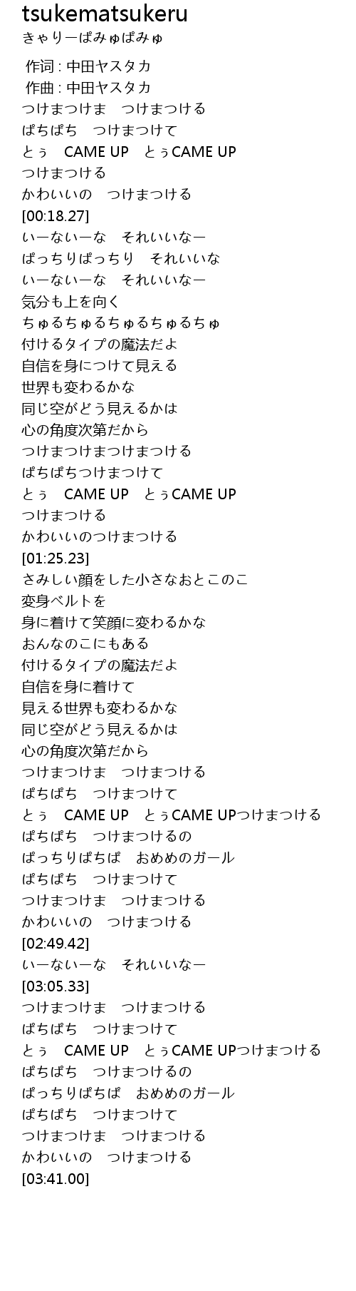 | [03:16.94] | とぅ CAME UP とぅCAME UPつけまつける |