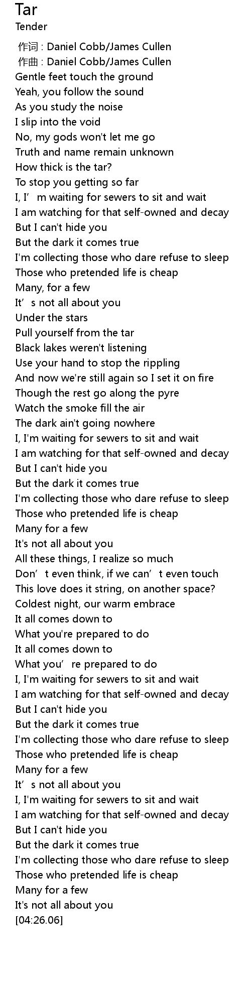 | [00:00.000] | 作词 : Daniel Cobb/James Cullen |