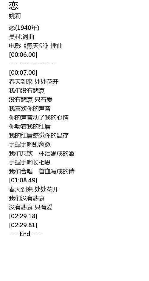 | [02:30.44] | ----End---- |