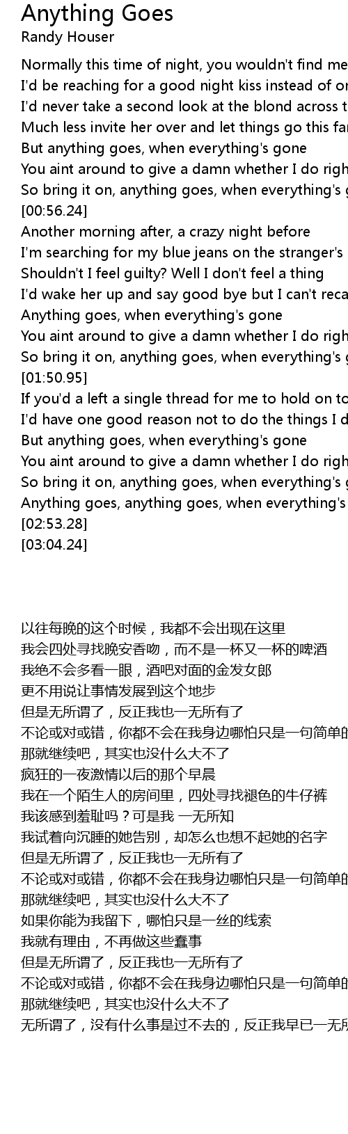 Anything goes, anything goes, when everything's gone |