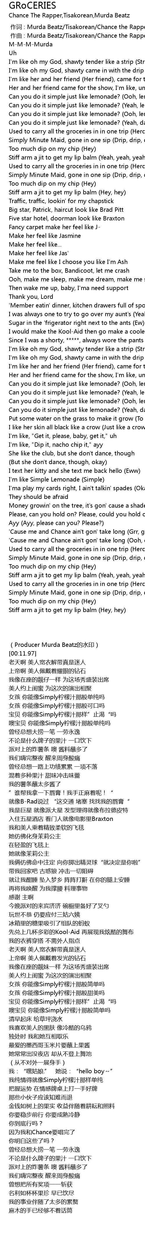 | [00:00.000] | zuo ci : Murda Beatz Tisakorean Chance the Rapper |
