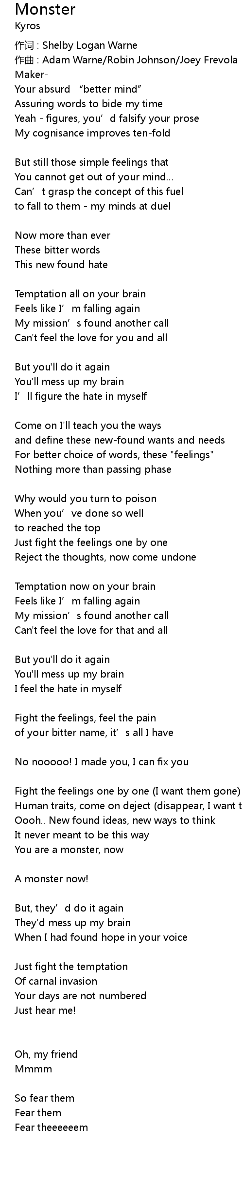 | 歌曲 | Monster |