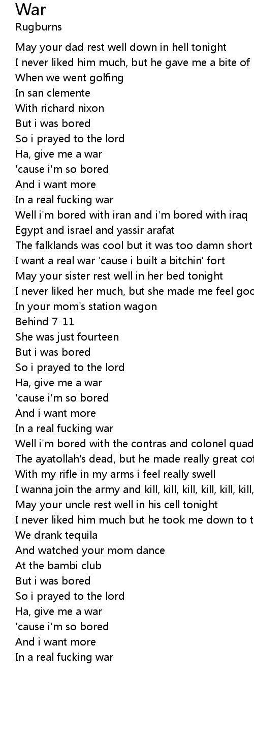 I wanna join the army and kill, kill, kill, kill, kill, kill, kill |