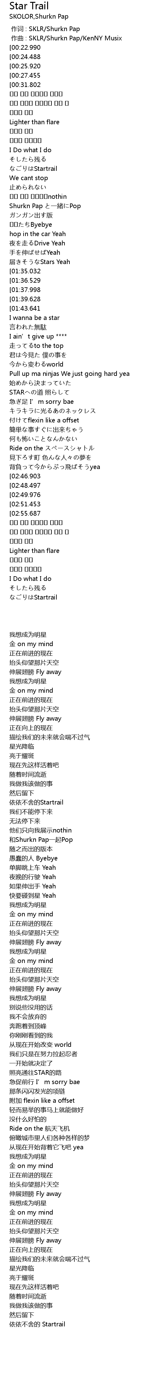 | [00:00.000] | 作词 : SKLR/Shurkn Pap |