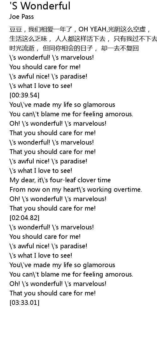 | [01:09.57] | ' s wonderful! ' s marvelous! |